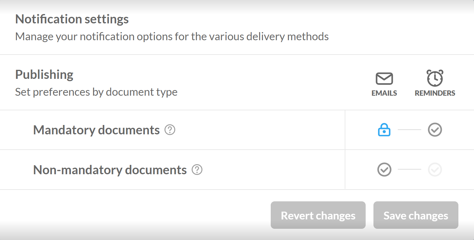 The notification settings menu, located beneath your password settings menu, is where you can manage your notification preferences for published documents.