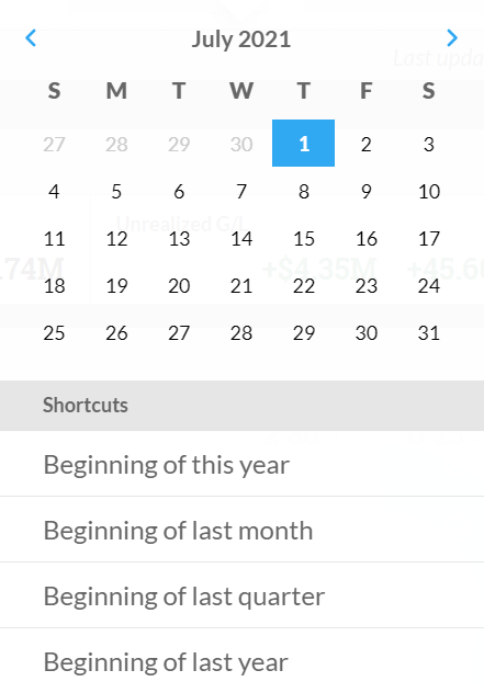 Select the calendar icon in each field and click a date in the calendar or the shortcuts menu that appears.