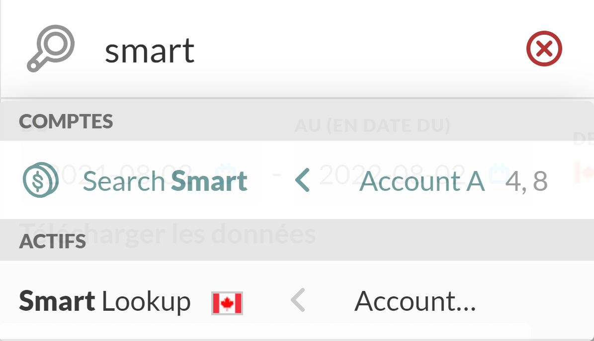 Une liste de comptes, de groupes de comptes, de placements ou de documents s’affiche, par ordre de pertinence. Dans votre menu déroulant des résultats de la recherche avancée :