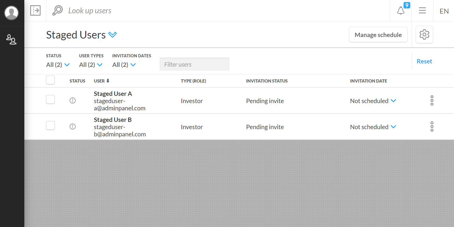 Staged Users - Manage schedule